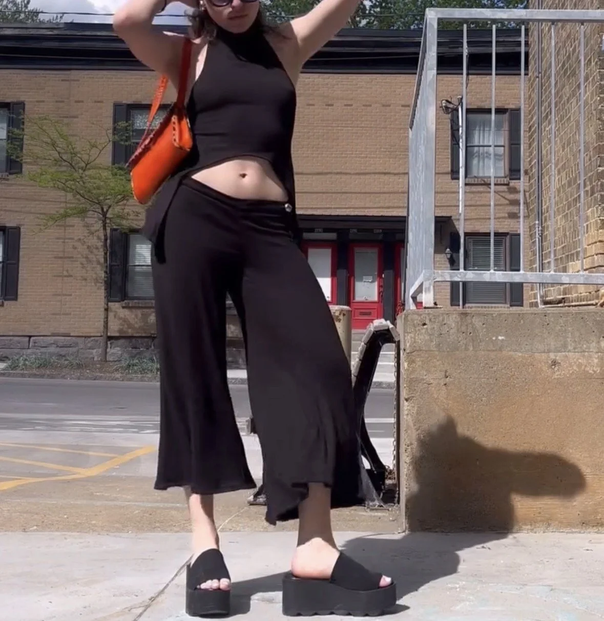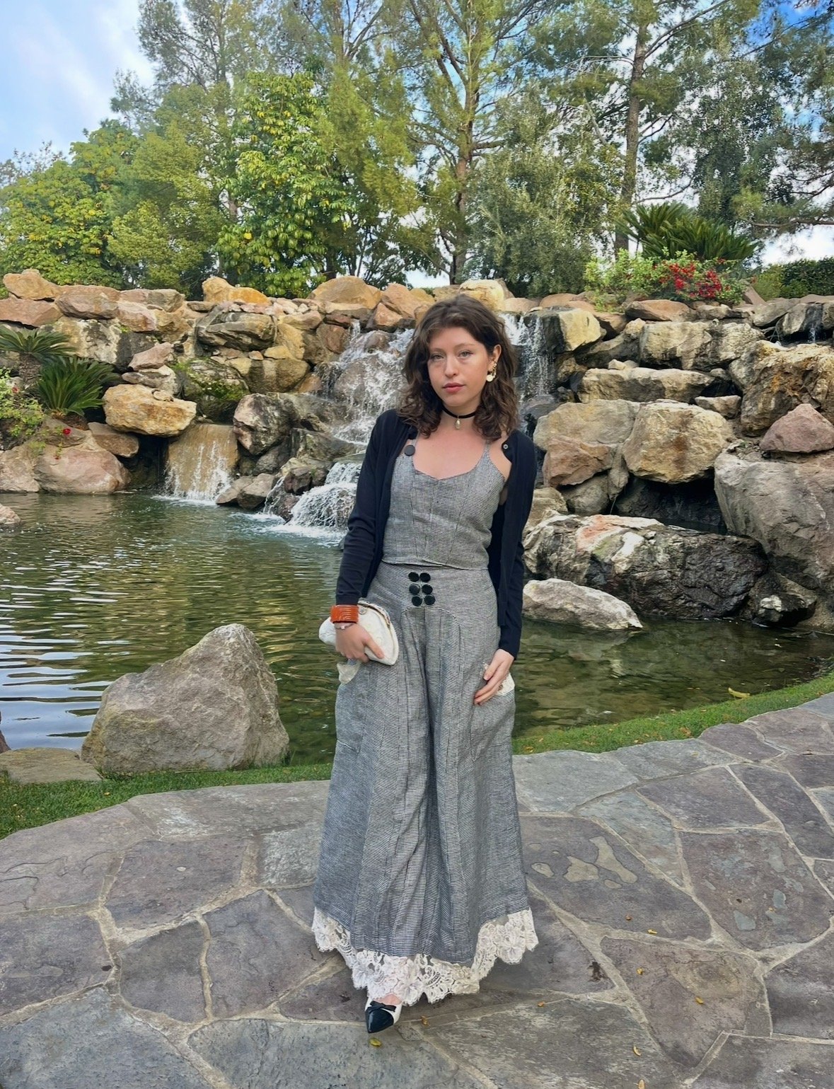 Two-piece set crafted from deadstock organic cotton, featuring self-taught pattern making.